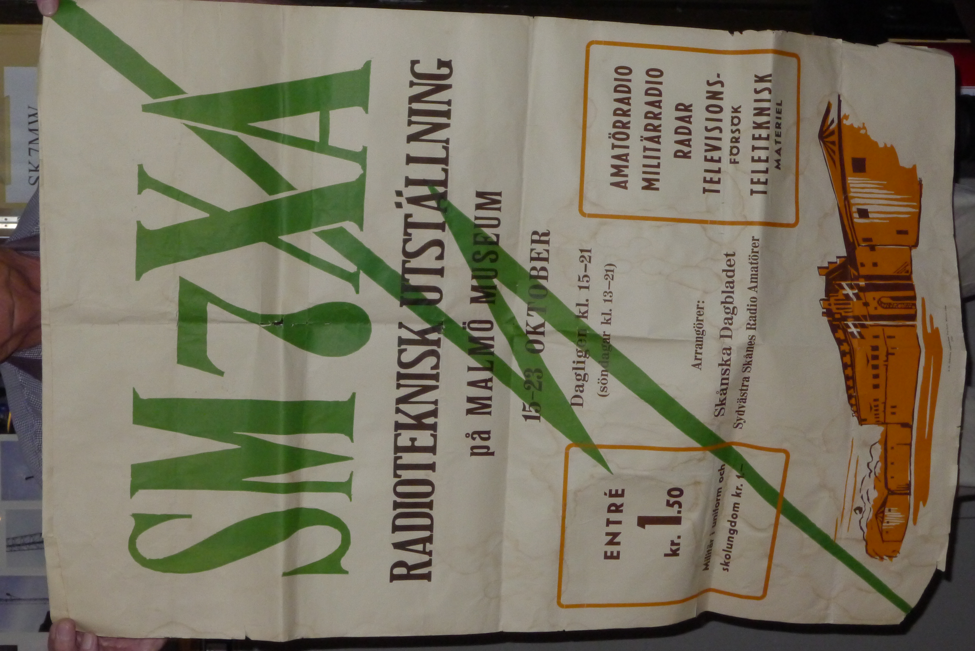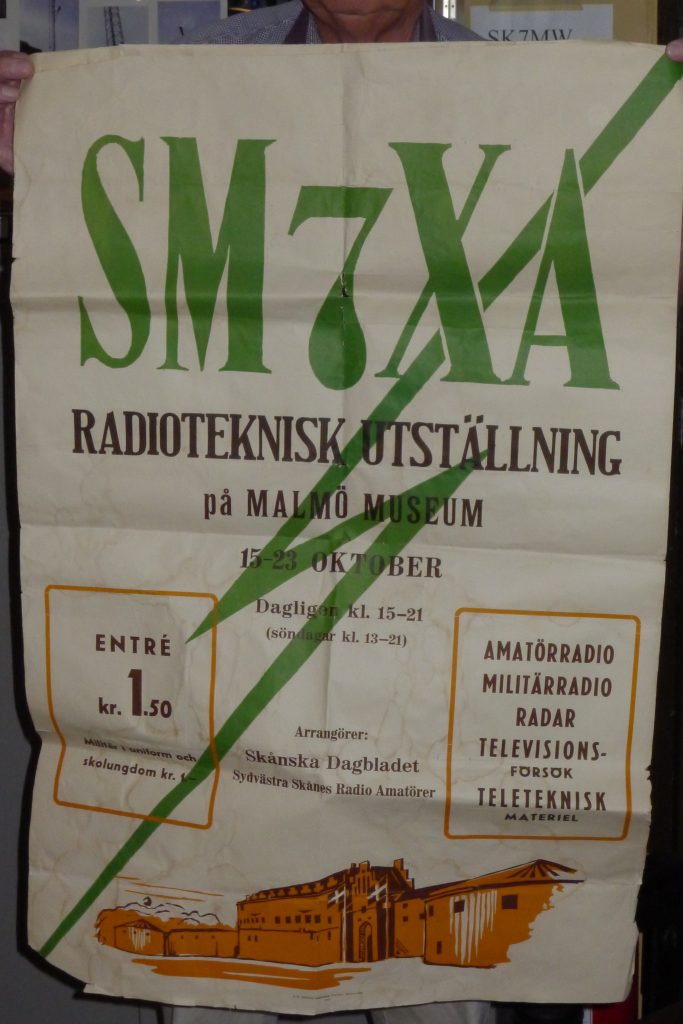 Bilden nedan är en affisch i original från 1949 där SSRA tillsammans med andra klubbar ordnade en teknikmässa vid Malmö museum där många nya tekniska nyheter förevisades. SM7AWQ/Christer hade fått affischen av SM7HM´s dotter Karin och SM7HM, Herbert Mårtensson, var en av grundarna av SSRA år 1949. Affischen kommer att ramas in på bästa sätt för eftervärlden.